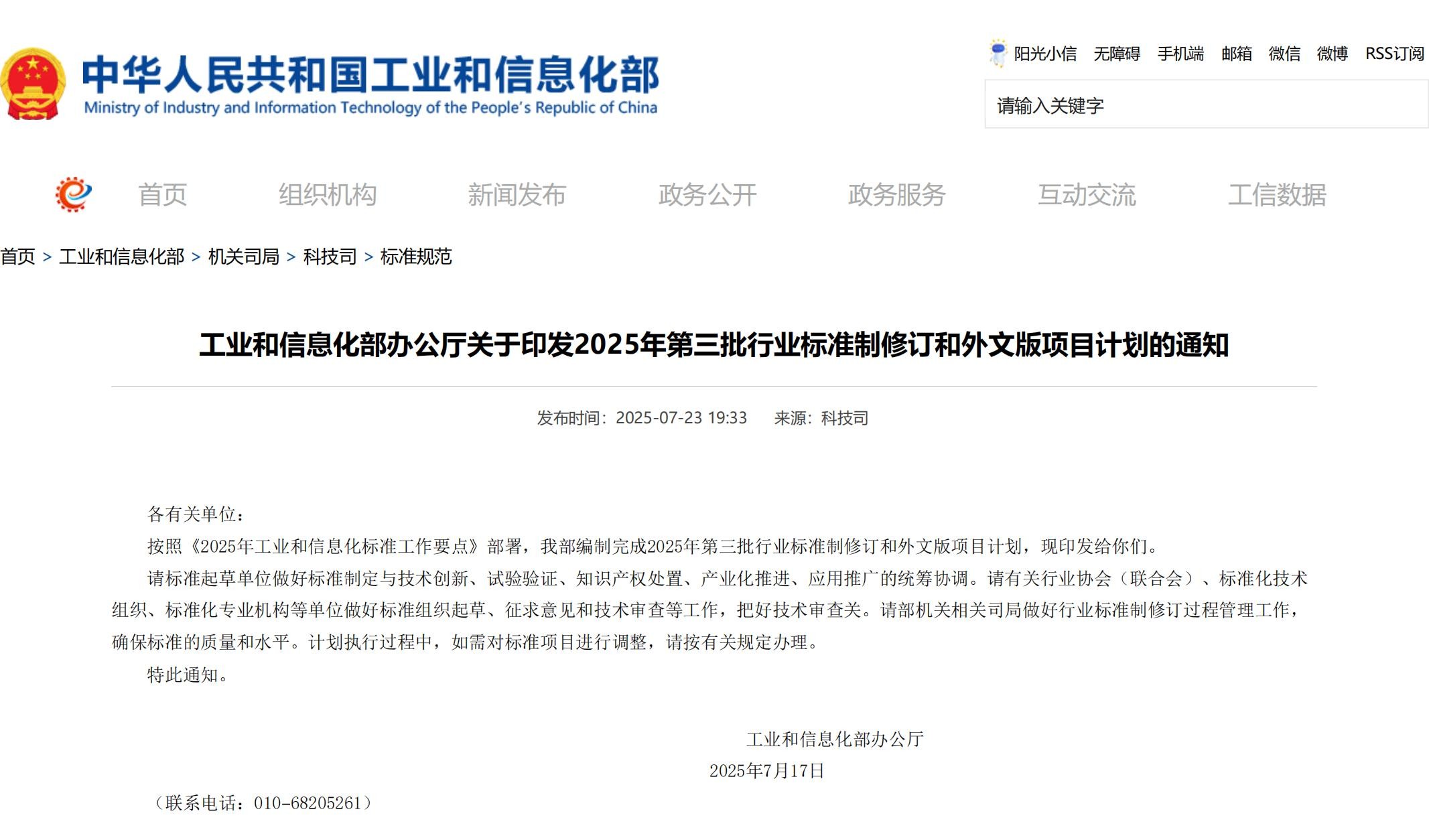 附件:1.工业和信息化部办公厅关于印发2025年第三批行业标准制修订和外文版项目计划的通知