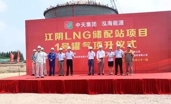 7月31日,伴随着3台鼓风机同时开动,中国寰球工程公司总承包的江阴液化天然气集散中心LNG储配站T-1201储罐(直径60米、高10米、重600吨)拱顶缓缓上升,历经130分钟实现平稳就位。这标志着世界上最大单罐双金属全包容LNG储气罐升顶成功。 江阴液化天然气集散中心LNG储配站项目由寰球公司自主设计和总包承建设2台8万方全包容双金属壁储罐,该项目的实施和新型技术的应用对于寰球公司具有创新开发的重要意义。 寰球公司作为国内LNG产业领军人物以及国家能源LNG技术研发中心落户单位,始终引领中国LNG技术和设备材料国产化的发展方向。通过参与国内第一个LNG接收站(广东大鹏项目),寰球公司在中国率先掌握了建造16万方LNG储罐的设计和施工技术。之后,在大连、江苏、唐山、上海等数个整装LNG接收站总承包项目执行过程中积累了丰富的经验,拥有了自主设计和总承包建造国际上全系列、全规格LNG储罐的业绩。 寰球公司已经拥有多套3万方、5万方、8万方、10万方、16万方单罐容积的LNG储罐成功应用,在中石油江苏如东总承包的国内最大20万方LNG储罐将于今年下半年投产。目前公司正在开发27万方LNG储罐,并同步开展大型LNG薄膜储罐的相关研究和应用工作。该公司主编的国家标准——液化天然气接收站工程设计规范(GB51156-2015)已经发布。 江阴液化天然气集散中心LNG储配站项目设计规模为年周转LNG100万吨,其中LNG气化外输50万吨、LNG装车外输50万吨。