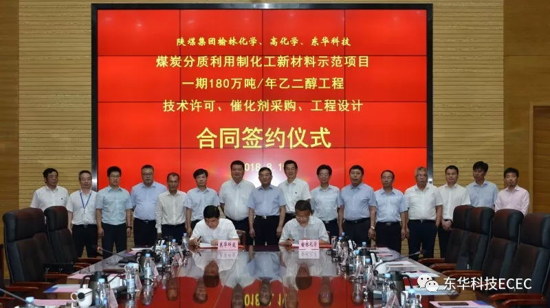 8月19日,陕煤集团榆林化学有限责任公司煤炭分质利用制化工新材料示范项目一期180万吨/年乙二醇工程设计合同签约仪式在东华科技工程公司举行。陕煤集团、高化学株式会社和东华科技的领导出席了签约仪式。 东华科技党委书记、董事长吴光美在签约仪式的讲话中感谢陕煤集团的高度信任,表示一定全力以赴,继续与高化学精诚合作,调集精干力量推进项目的顺利实施,保质保量地完成设计工作。 高化学株式会社社长高潮说,陕煤集团是高化学强有力的战略合作伙伴,高化学将会提供更先进的技术、更优质的服务,保证项目技术力量,并在未来项目实施中进一步加强与陕煤集团的合作。 陕煤集团党委书记、董事长杨照乾表示,本次签约代表着陕煤集团与高化学及东华科技正式确立了友好合作关系,在未来的工作中,陕煤集团将携手各方,把本工程建设成为模范工程,为后续项目建设打好基础。 陕煤榆林化学180万吨/年乙二醇装置是陕煤集团榆林千亿煤化工项目的主要装置之一,也是目前世界上最大的乙二醇装置。此次签约标志着该工程将全面开始基础设计并进入实质性推进阶段。