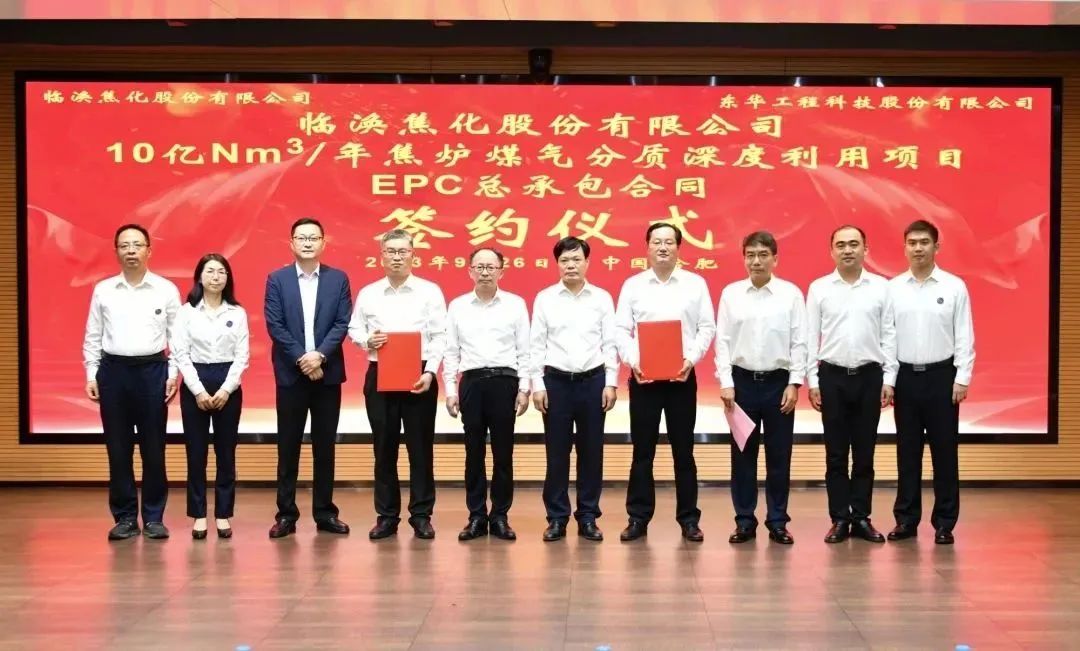 9月26日,东华工程科技股份有限公司在安徽合肥签订了临涣焦化股份有限公司10亿Nm³/年焦炉煤气分质深度利用项目EPC总承包合同。淮北矿业(集团)有限责任公司(以下简称“淮北矿业”)党委书记、董事长方良才;临涣焦化股份有限公司(以下简称“临涣焦化”)党委书记、董事长李治国;东华科技党委书记、董事长李立新,党委副书记、总经理郭贵和,党委委员、副总经理叶平共同出席签约仪式。