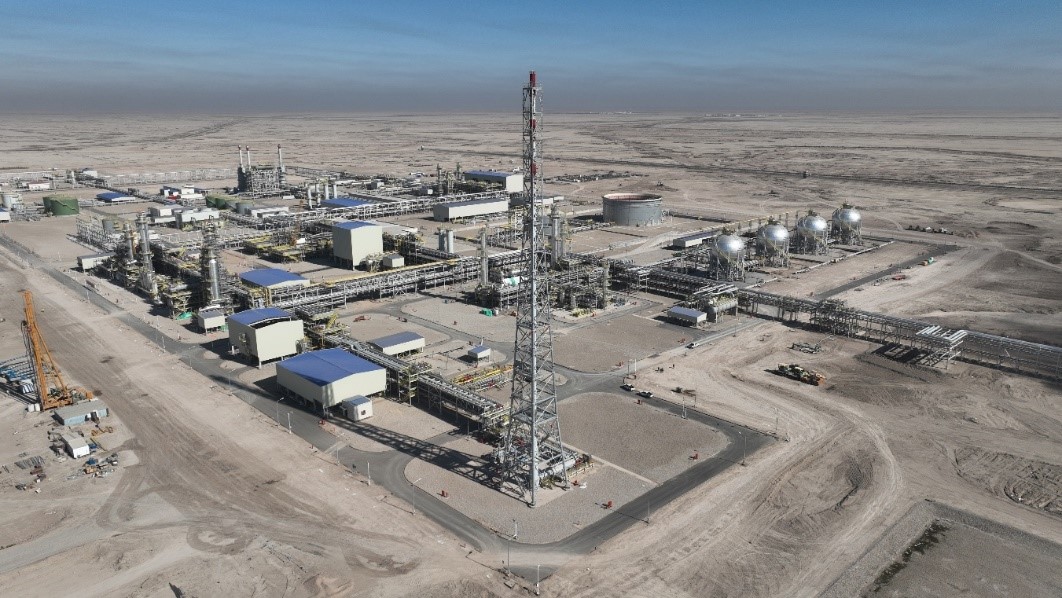 天然气处理厂是B9油田上产10万桶/天建设工程的重要子项目之一,主要内容包括新建1列处理装置以及酸气焚烧装置、LPG罐区等辅助设施,设计日处理油田伴生气1.3亿立方英尺(MMSCFD)。作为伊拉克的重点绿色环保与民生项目,其顺利投产将极大减少油田伴生气的排放,所生产的天然气和液化石油气能够满足当地300万户家庭的用电需求,对于增加当地天然气供应,降碳减排和保护环境具有重要意义。